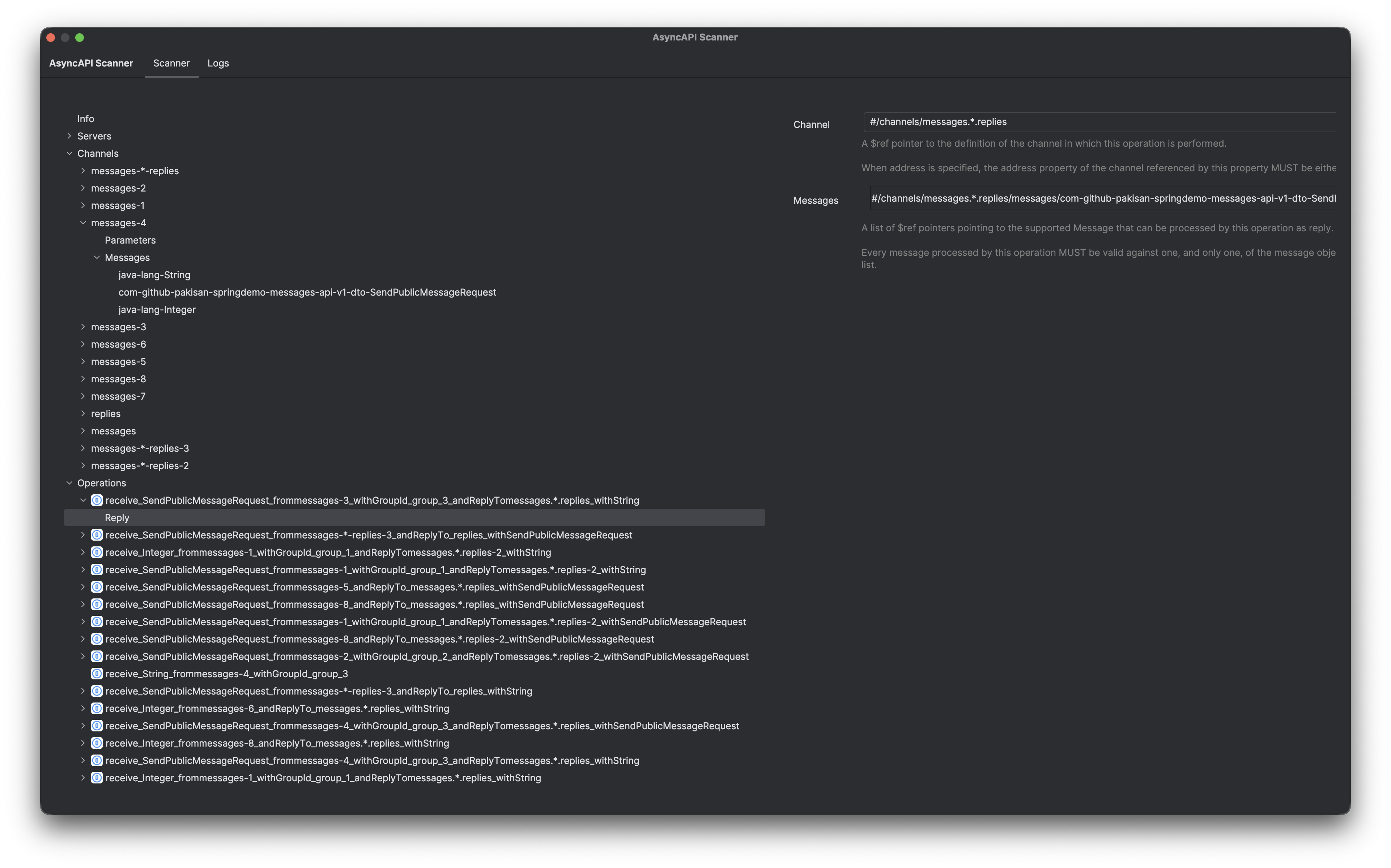 ${myTopicName}when it doesn't exist in the properties file - Operations, Channels, Schemas description are extracted from comments